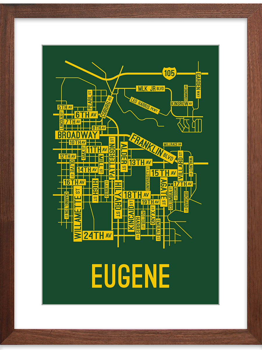 Eugene, Oregon Street Map Screen Print School Street Posters