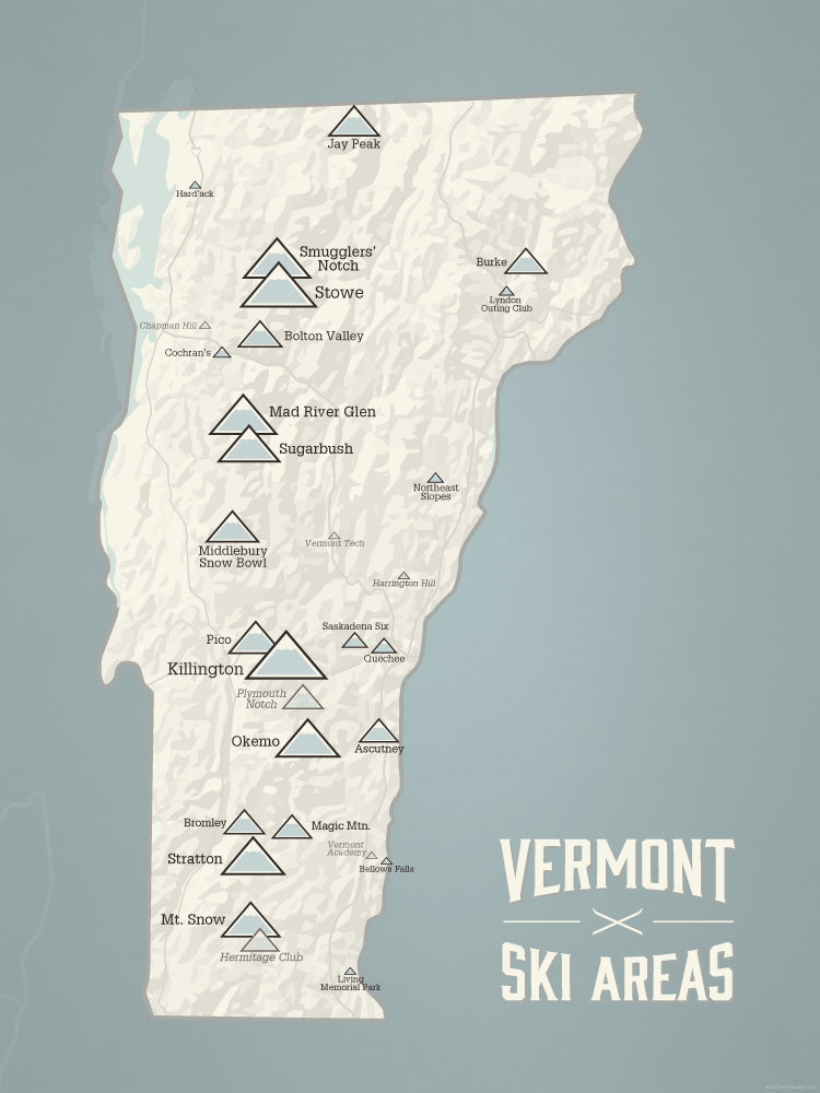 Vermont Ski Resorts Map 18×24 Poster | Vermont ski resorts, Ski