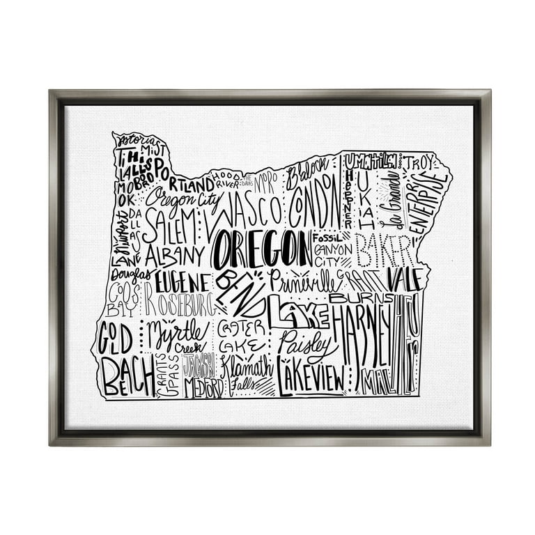 Stupell Industries Oregon State Cities Map Graphic Art Luster Gray