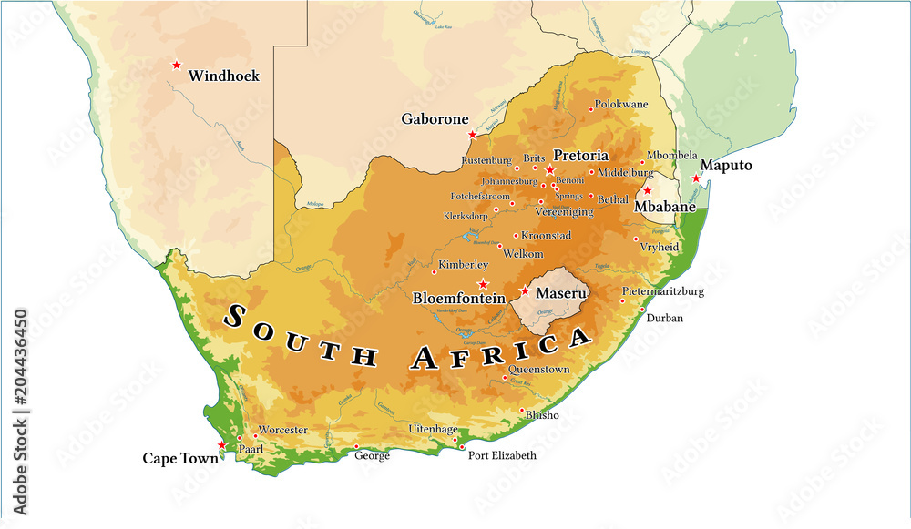 Republic of South Africa physical map. Stock Vector | Adobe Stock